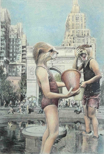 Pen and watercolor pencils on paper